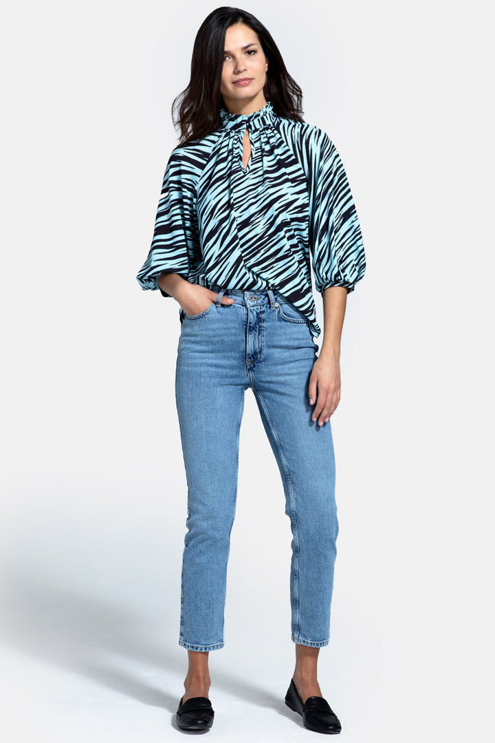 Balloon-Sleeved Top with High Collar