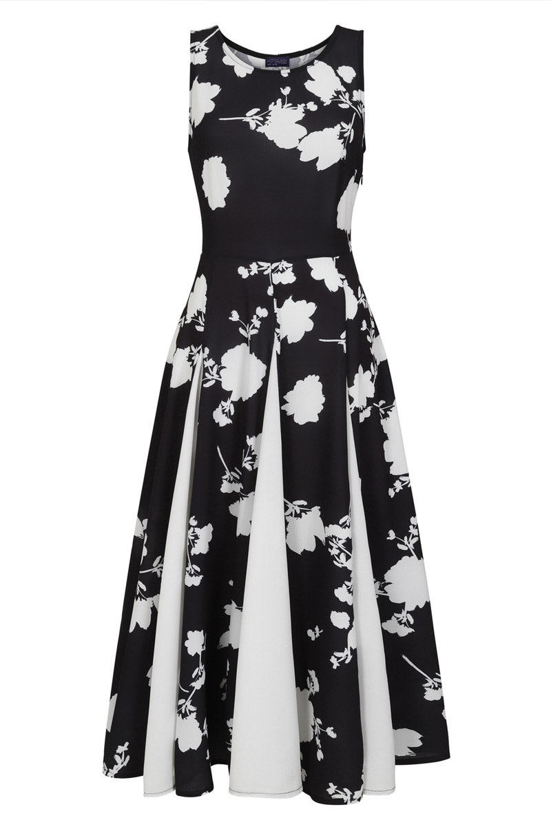 This midi dress with contrast box-pleat detail is HotSquash London's vibrant take on a feminine classic. The sleeveless design and rounded neckline add to the classic A-Line silhoette, and the midi length gives the style a touch of sophistication, while the box pleats forgive a multitude of sins! This dress has been made in London from crease-resistant fabric. Team it with strappy heels to enhance the feminine feel on summer nights out, or wear to the office with flats for a contemporary daytime look.