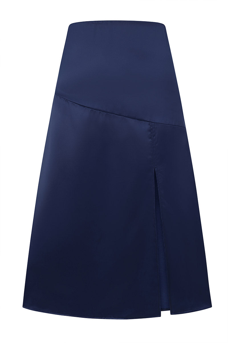 A soft, silky, satin feel skirt in a midi-length style, designed with a high split on the side to add a touch of glamour to this classic feminine silhouette. The high-waist band is elasticated all the way around, providing all day comfort - team with a pretty cami or lace top for the perfect alternative wedding guest outfit.