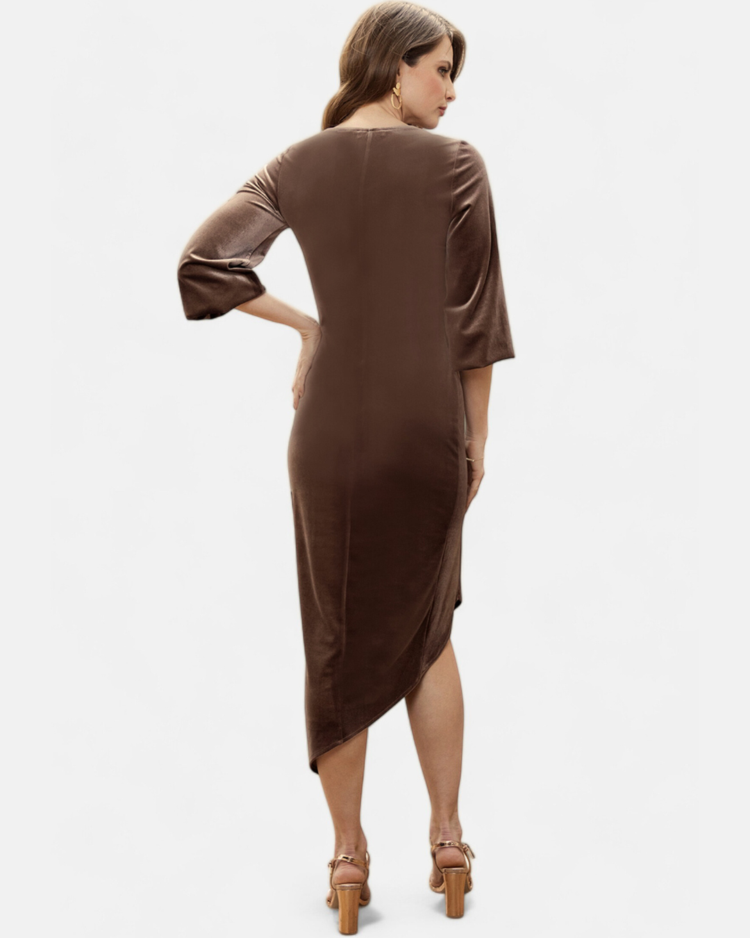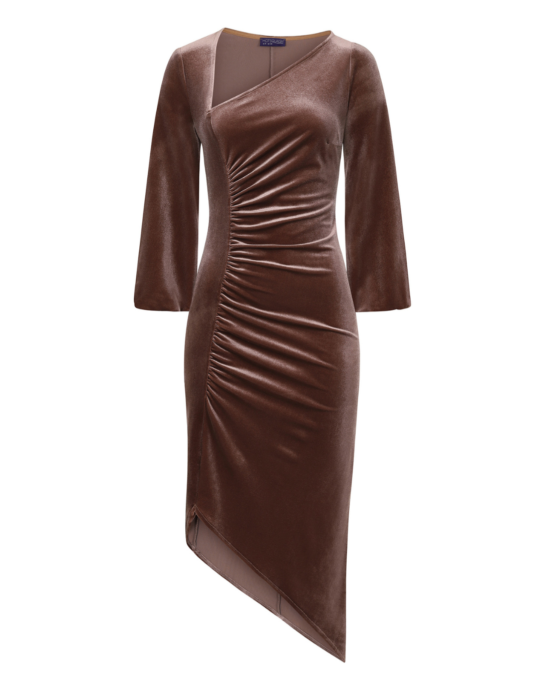 A bodycon midi dress, with a twist! This Velvet Ruched Midi Dress from HotSquash hugs you in all the right places, and with the clever ruching detail running along the length of the body, you'll feel comfortable and confident all night long! The asymmetric hem adds an element of sophistication to the dress, and the long sleeves are elasticated at the cuffs to create a gorgeous blouson effect. This figure flattering dress will definitely be your go-to party wear this season!